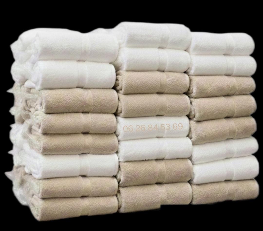 - Serviettes visage et mains : 30x50 cm, 40x60 cm et 50x90 cm.